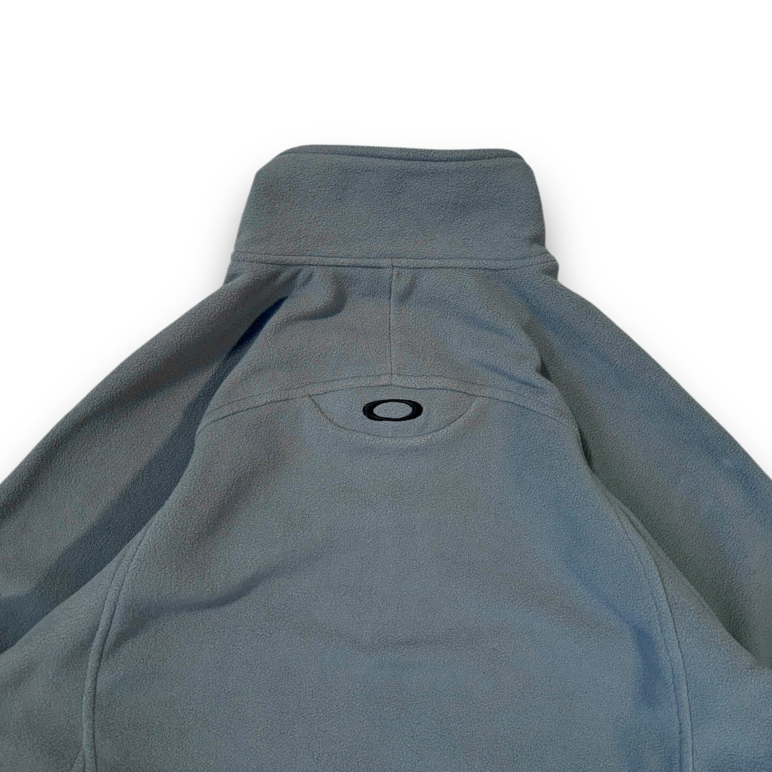 Fleece fits on the larger side. Light grey colourway, quarter zip with an embroidered logo just beneath the zipper. Toggle adjustable hem so fleece can be cinched at the bottom.