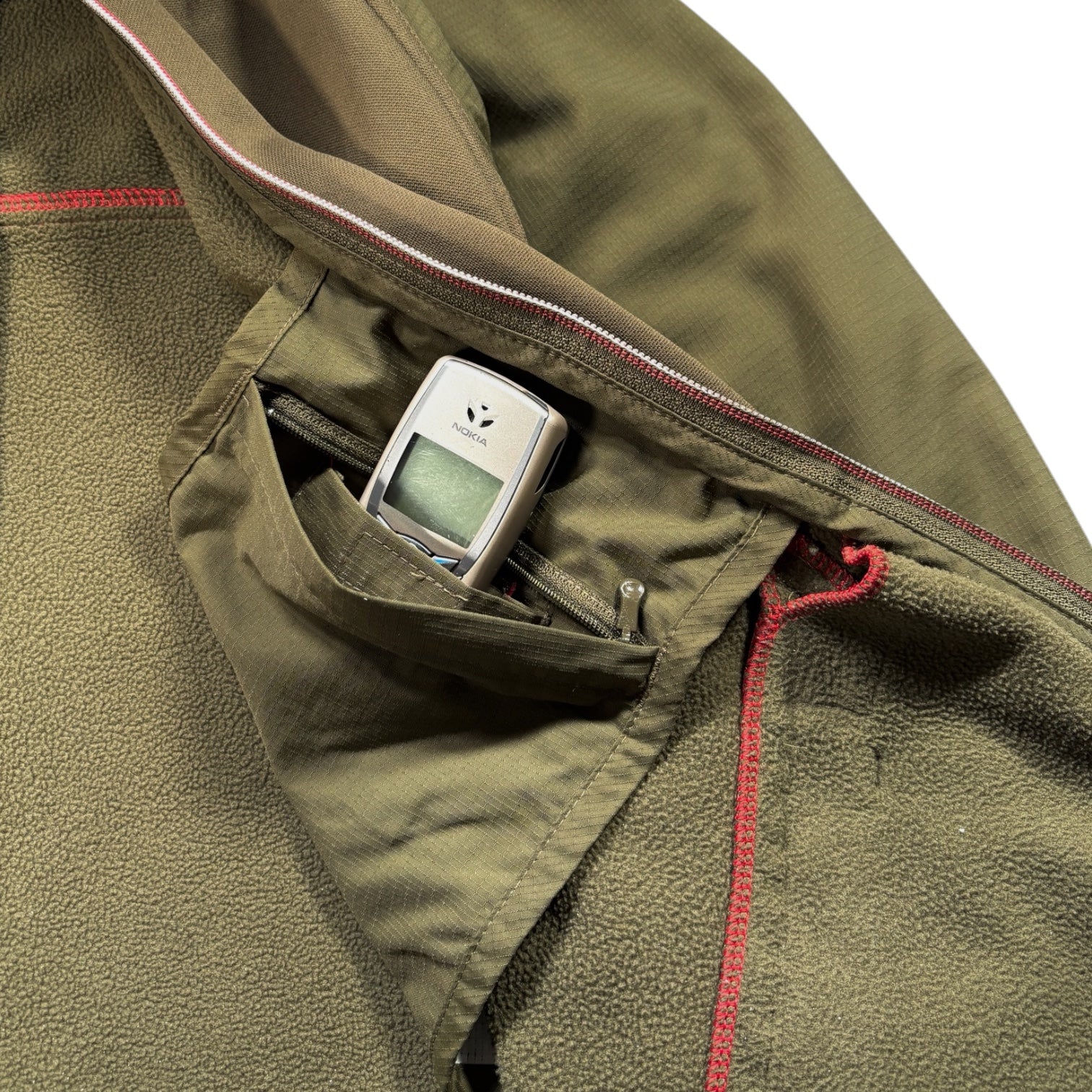 . Olive green two tone colourway with contrasting panel construction