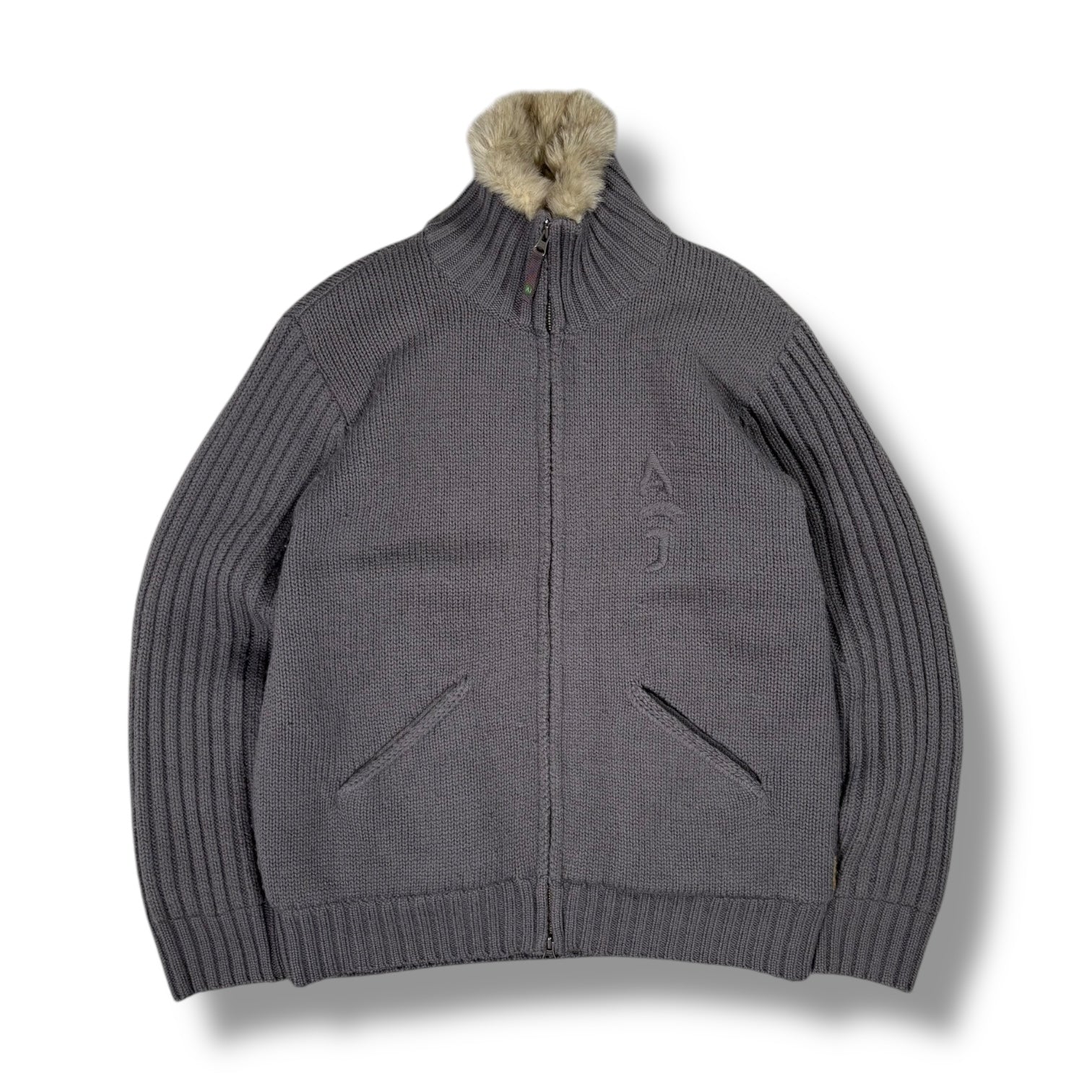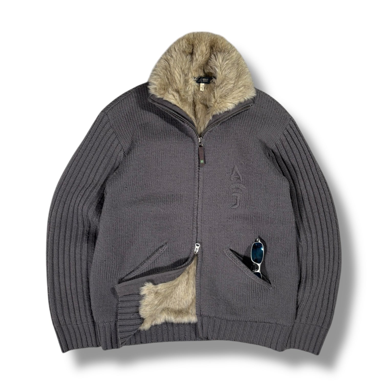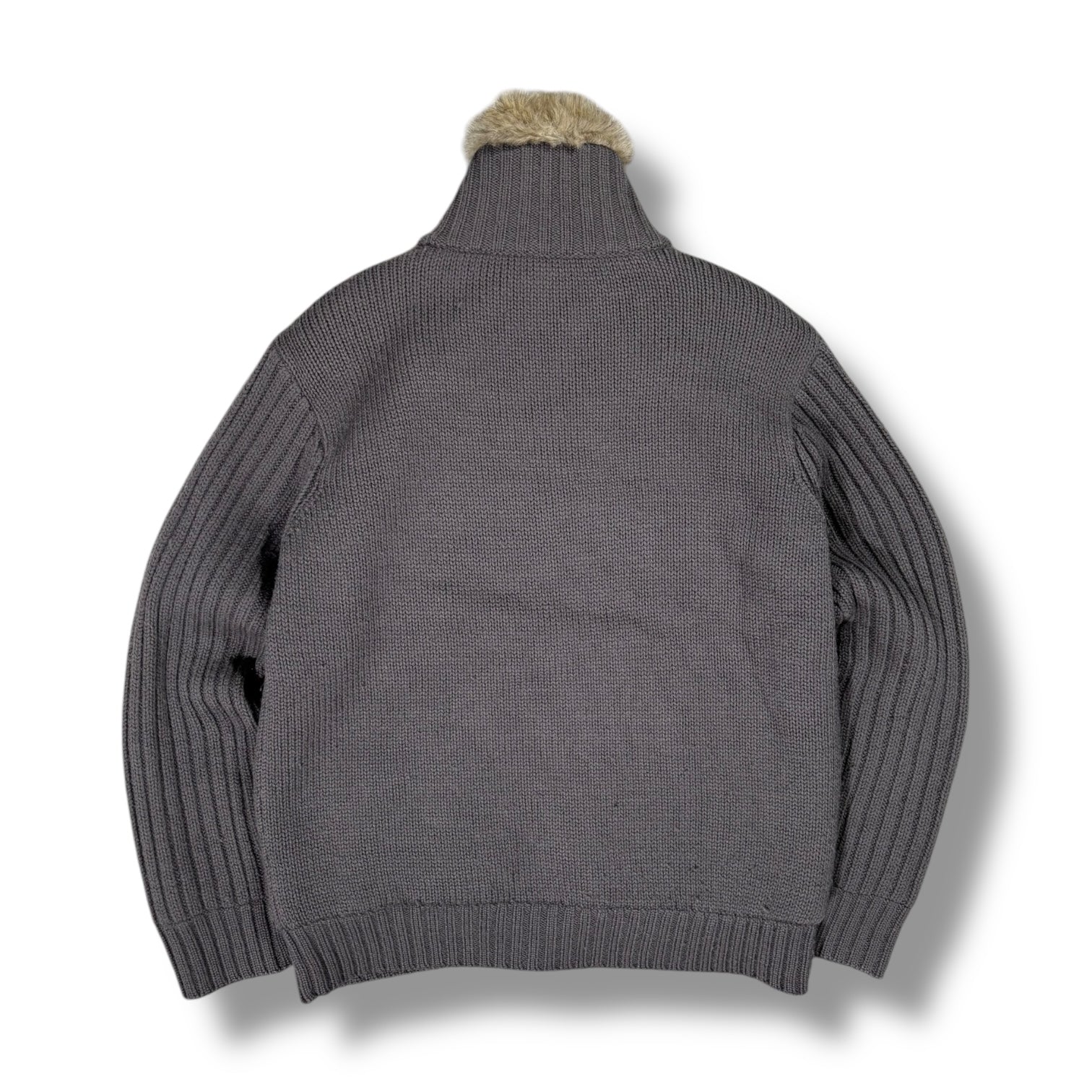 Armani 00’s Faux Fur Full Zip Knit Jumper Large