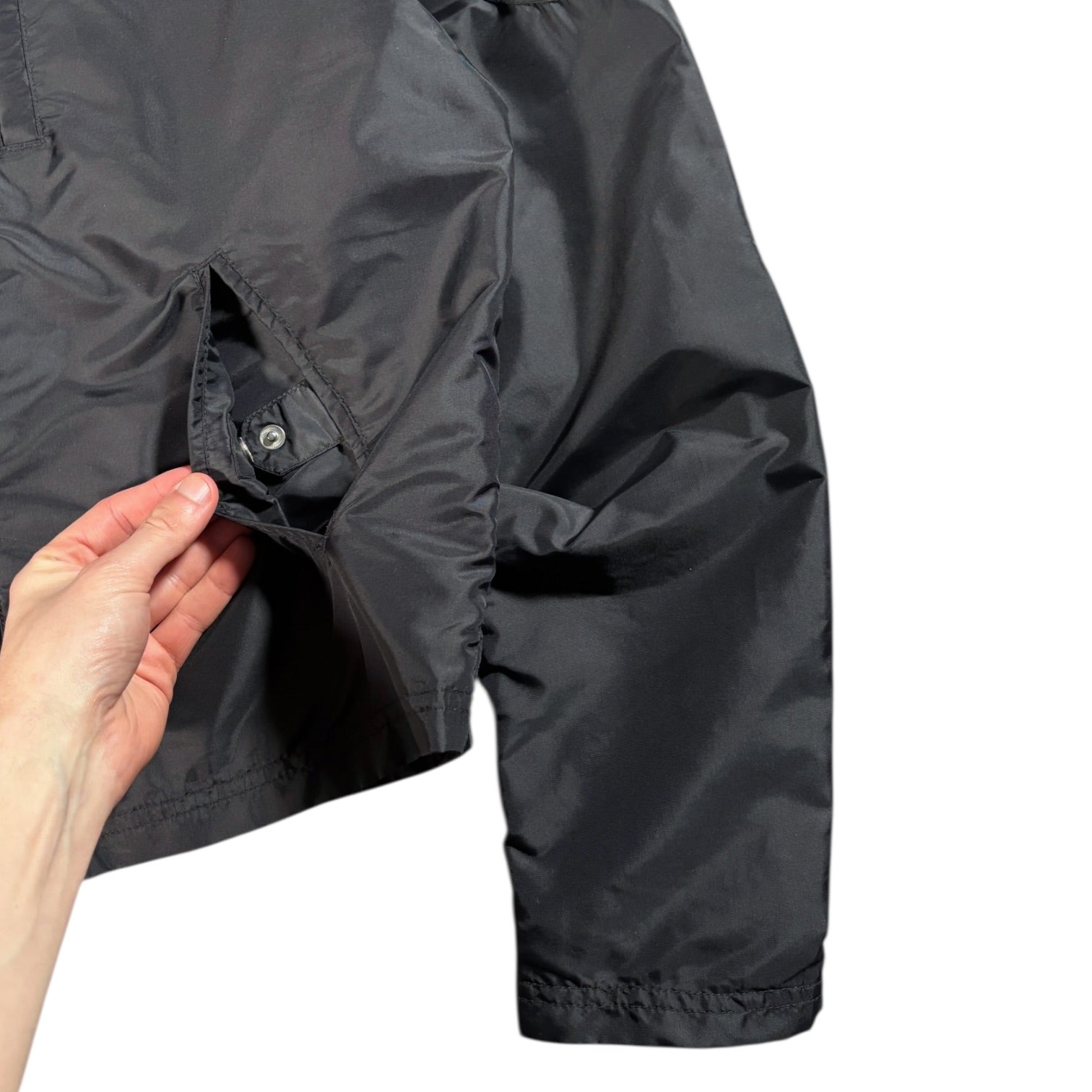 .Lightweight black nylon construction with subtle sheen