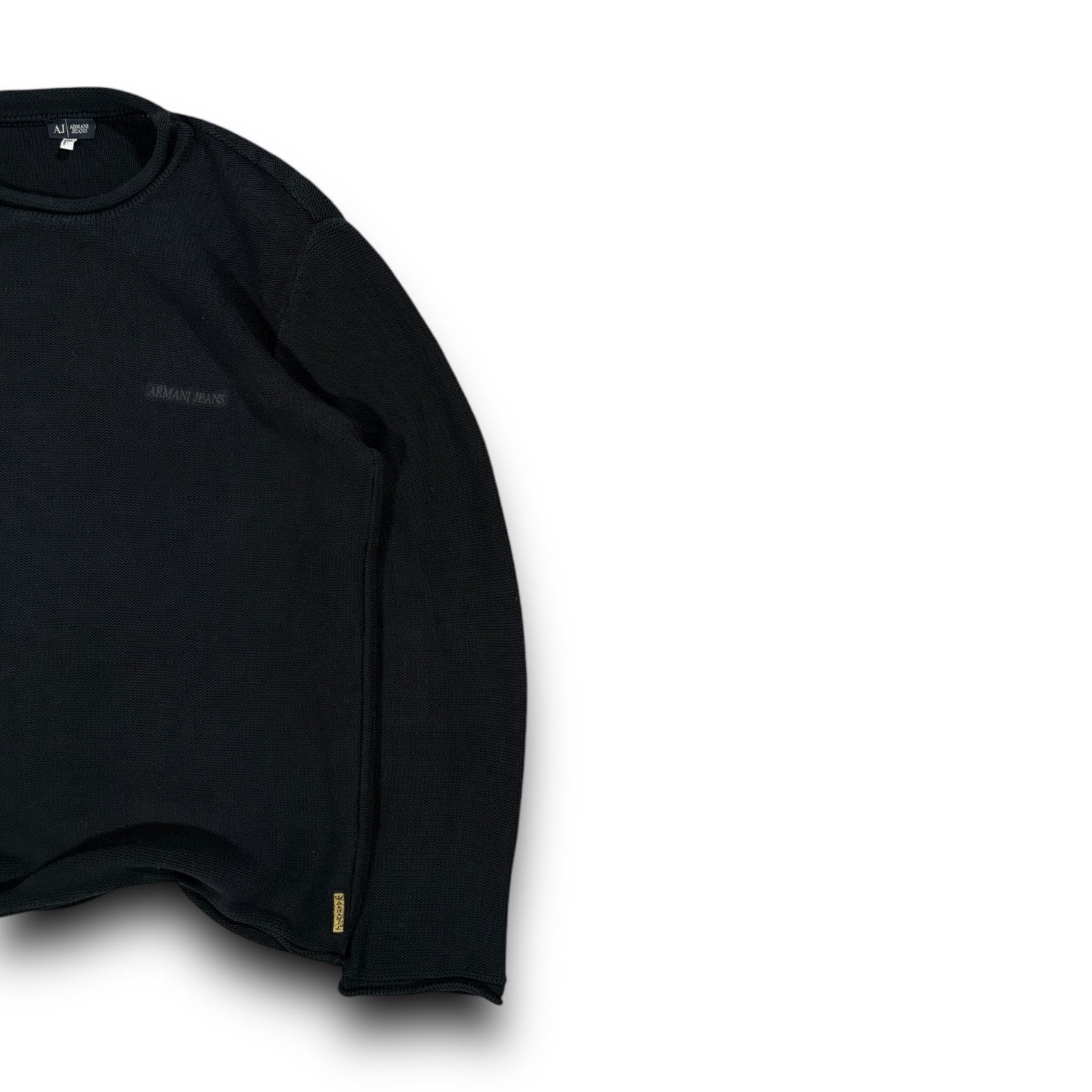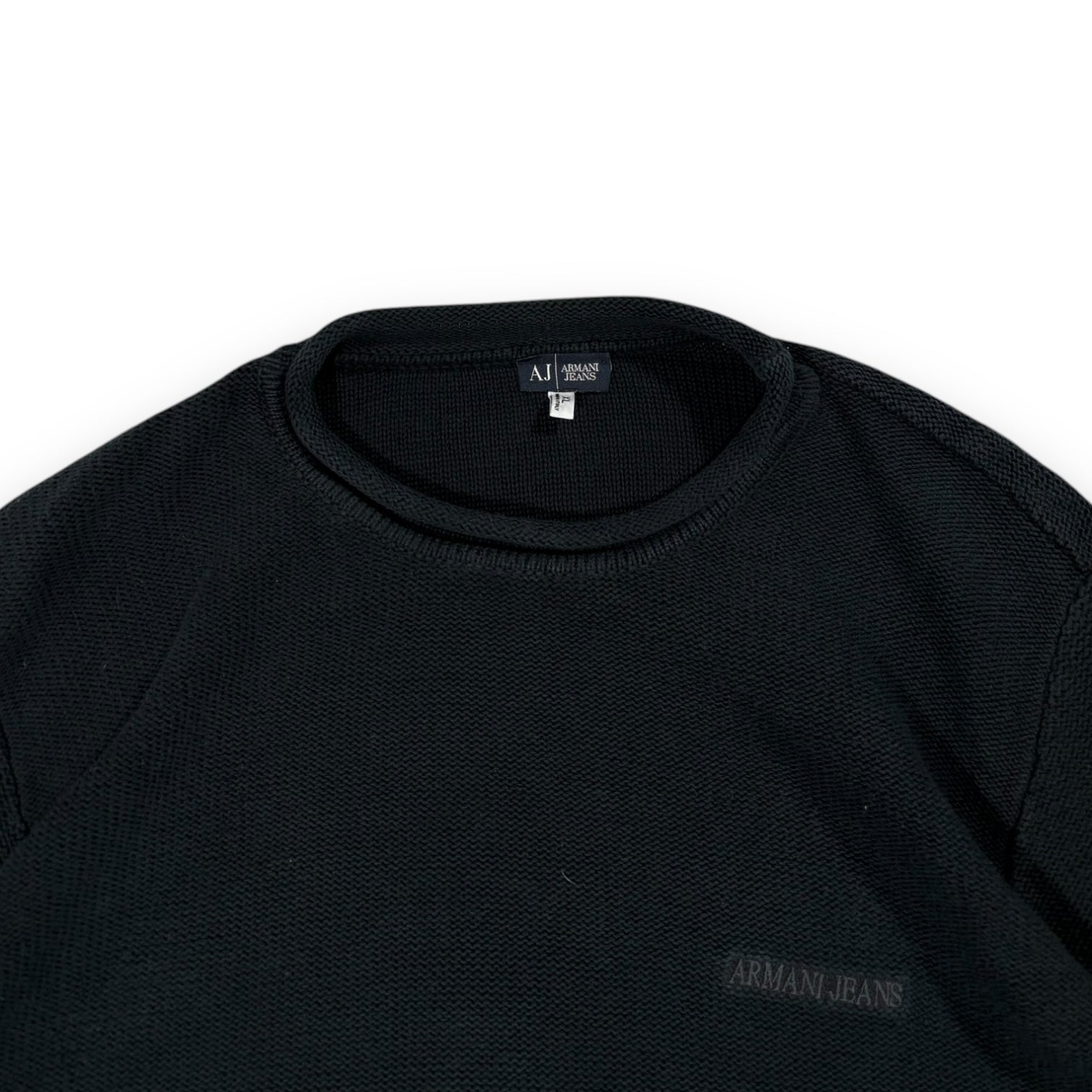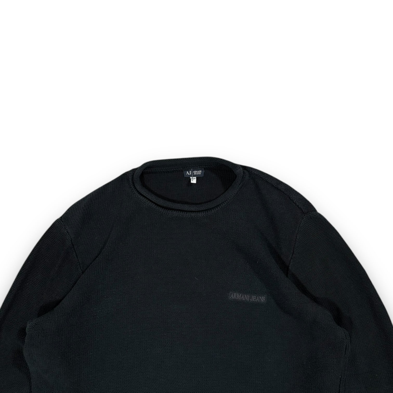 Black colourway, heavyweight knit. Small Armani tag at the bottom and another embroidered logo on the chest.