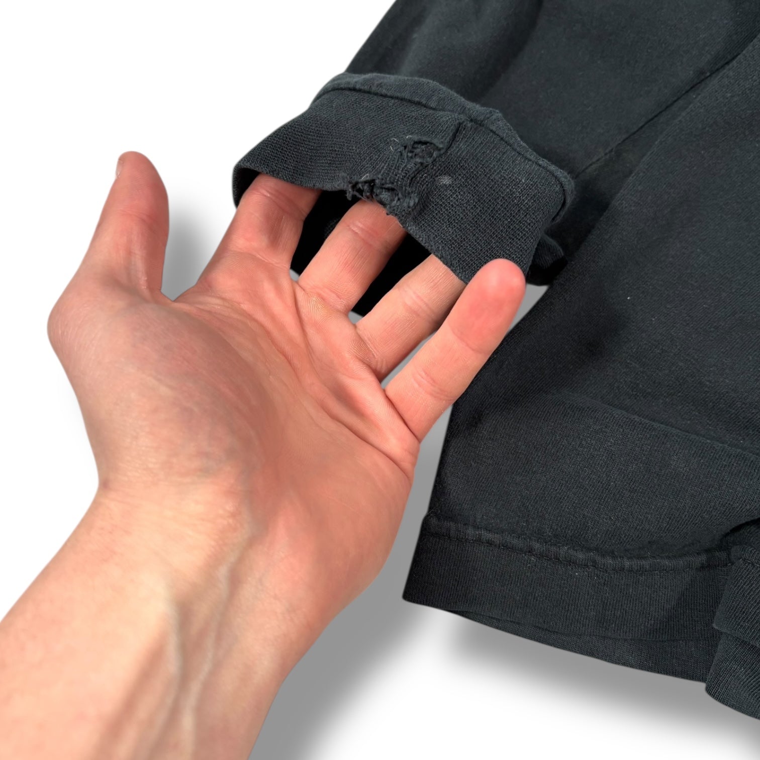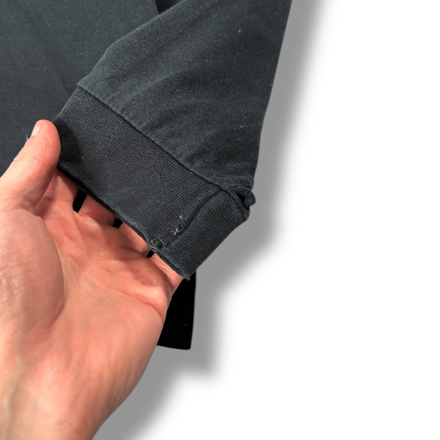 Great Condition - allow for minor signs of wear. Wearing at cuff, small hole under the armpit and another small pinhole by the cuff. Some marking around the t shirt.