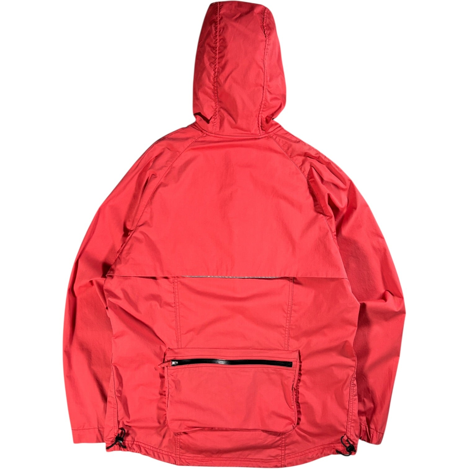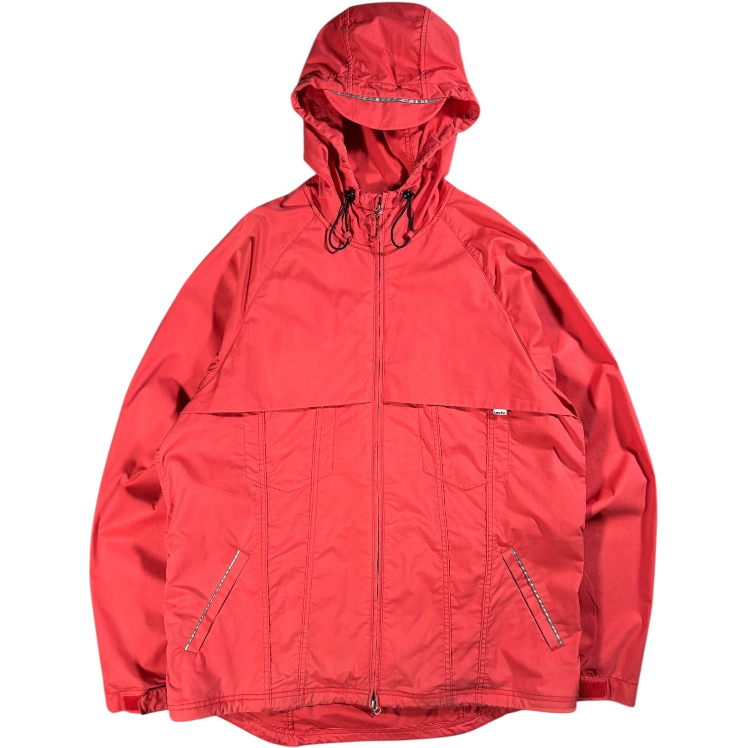 .Lightweight red colourway with full-zip front and adjustable hood with drawcords