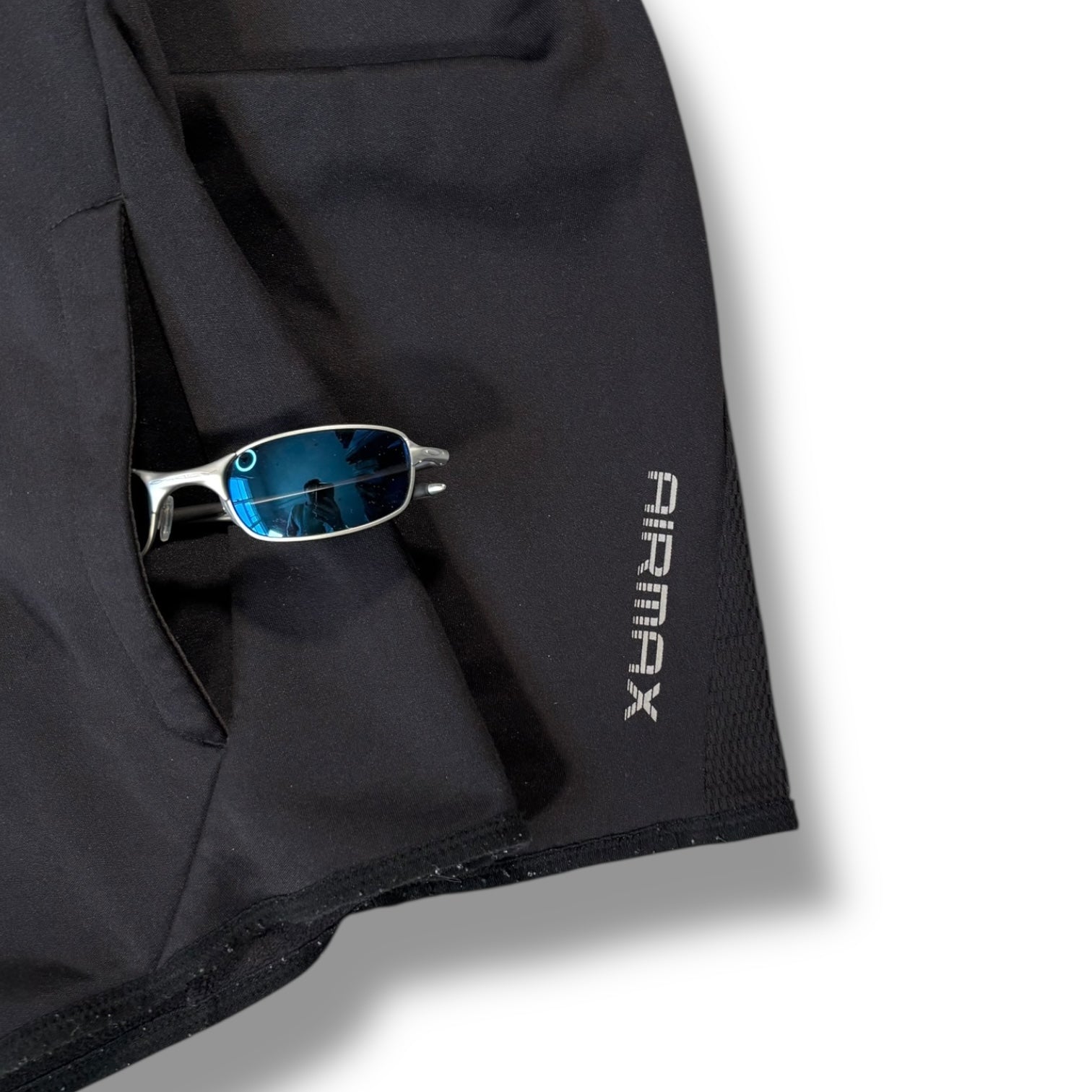 Black colorway, lightweight scuba material. 2 open slit pockets. Front zipper is asymmetrical and features both a quarter zip and full zip. Nike centre swoosh on the chest and air max logos throughout.