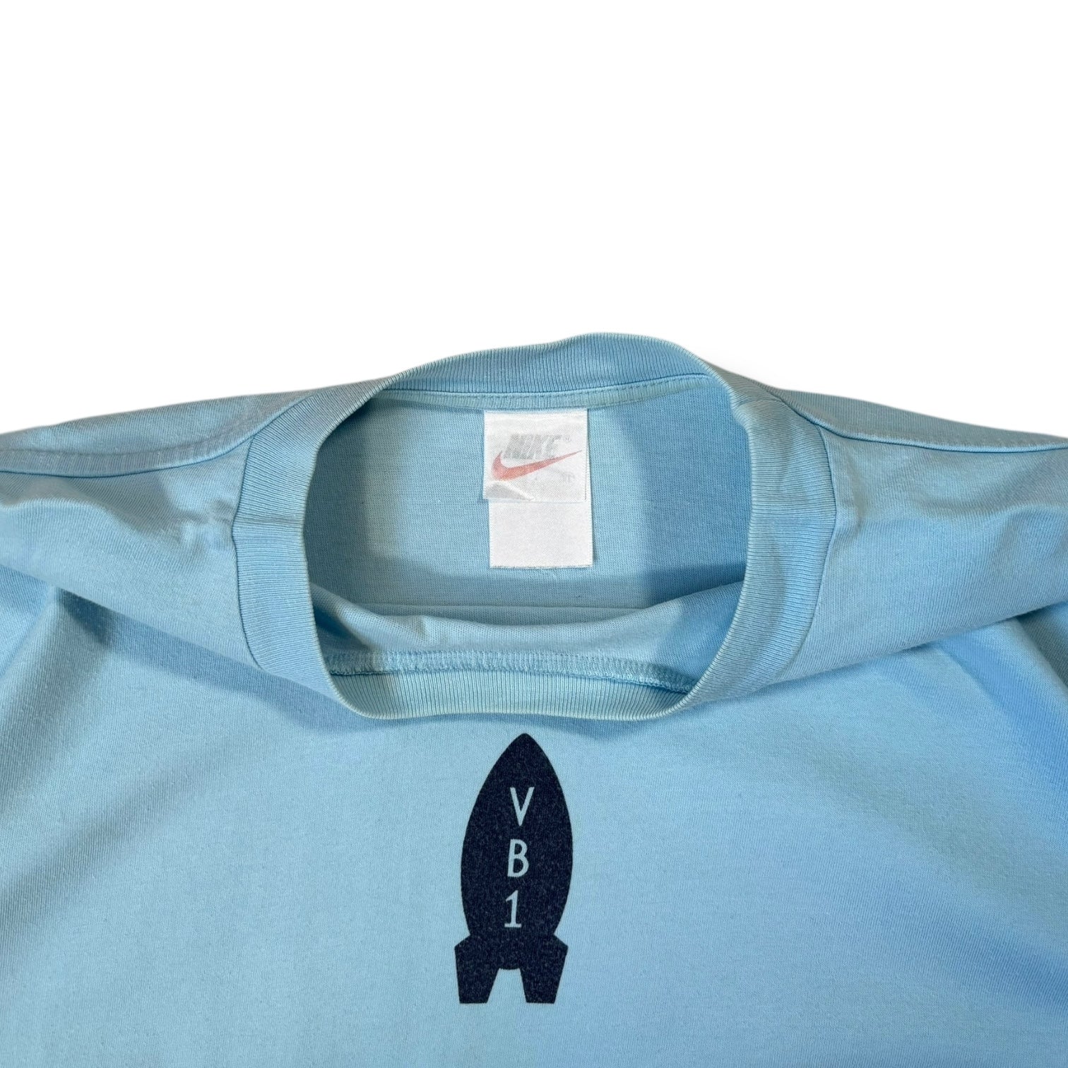 Light blue colourway. Nike rocket logo graphic on the front and “3,2,1, Fire” graphic on the back. Perfect t shirt for summer, haven’t seen many of these about at all. Believe it is from the Nike volleyball collection.
