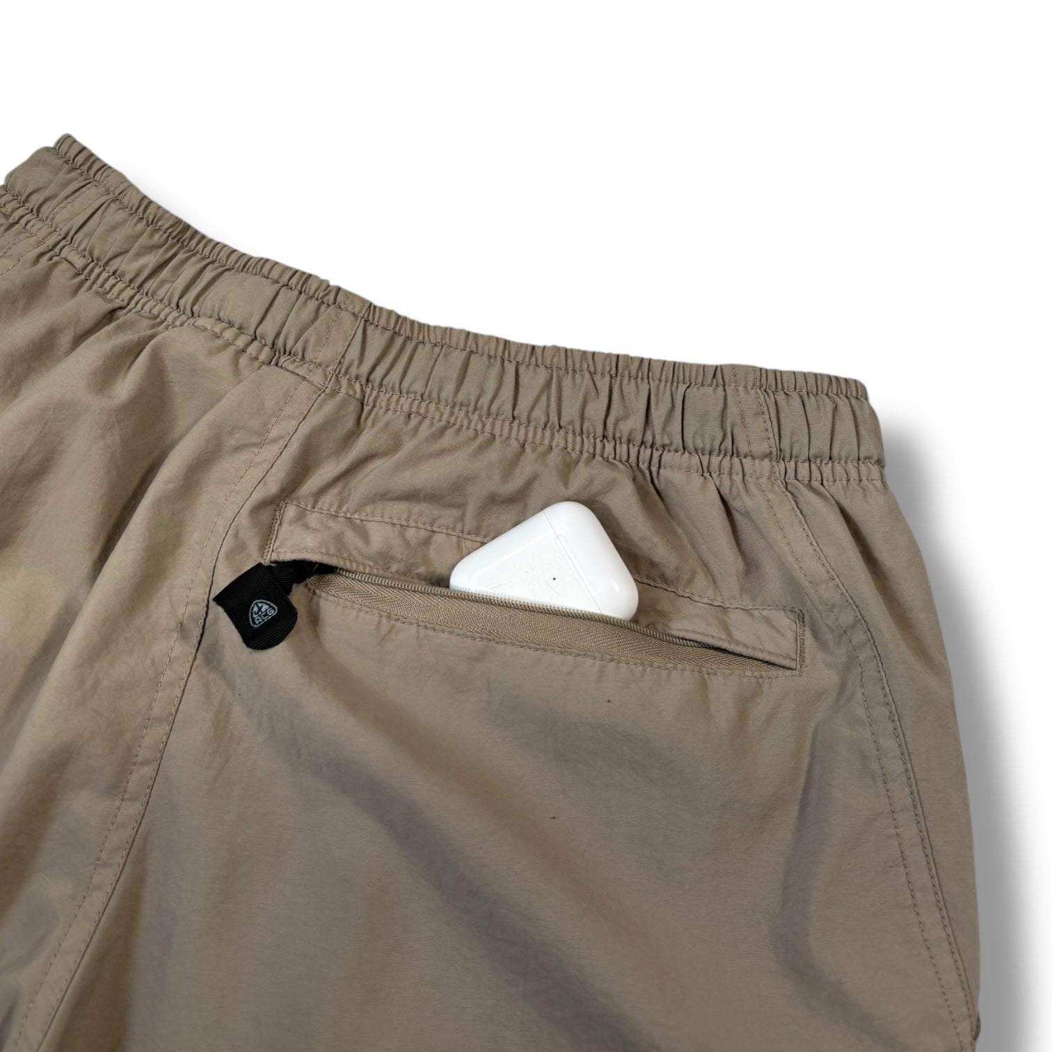 Khaki colourway, a lightweight material. Features 2 open slit pockets, 2 large velcro pockets at the bottom and a small stash pocket bellow also has a zipped back pocket. Waist has a inbuilt on the Interior.