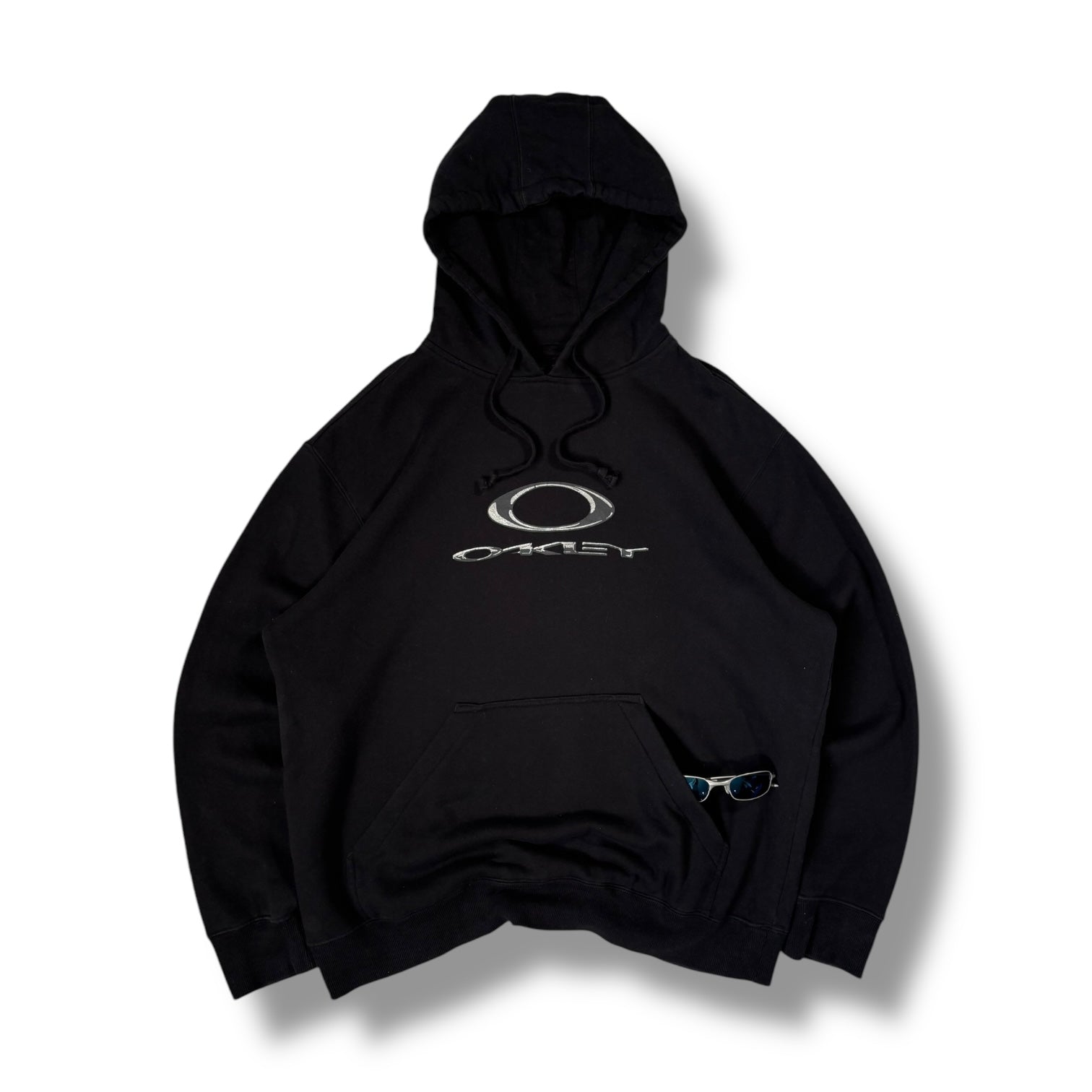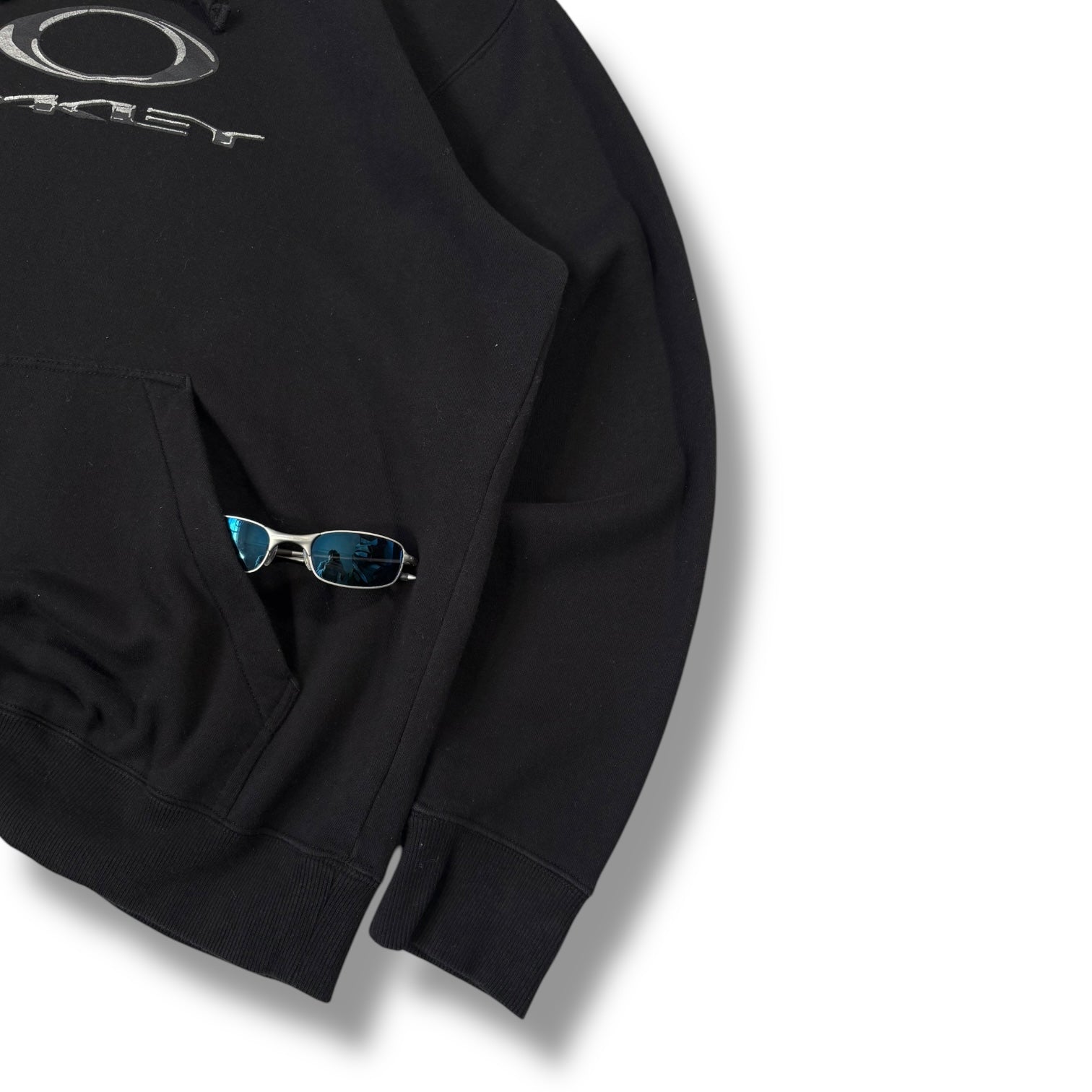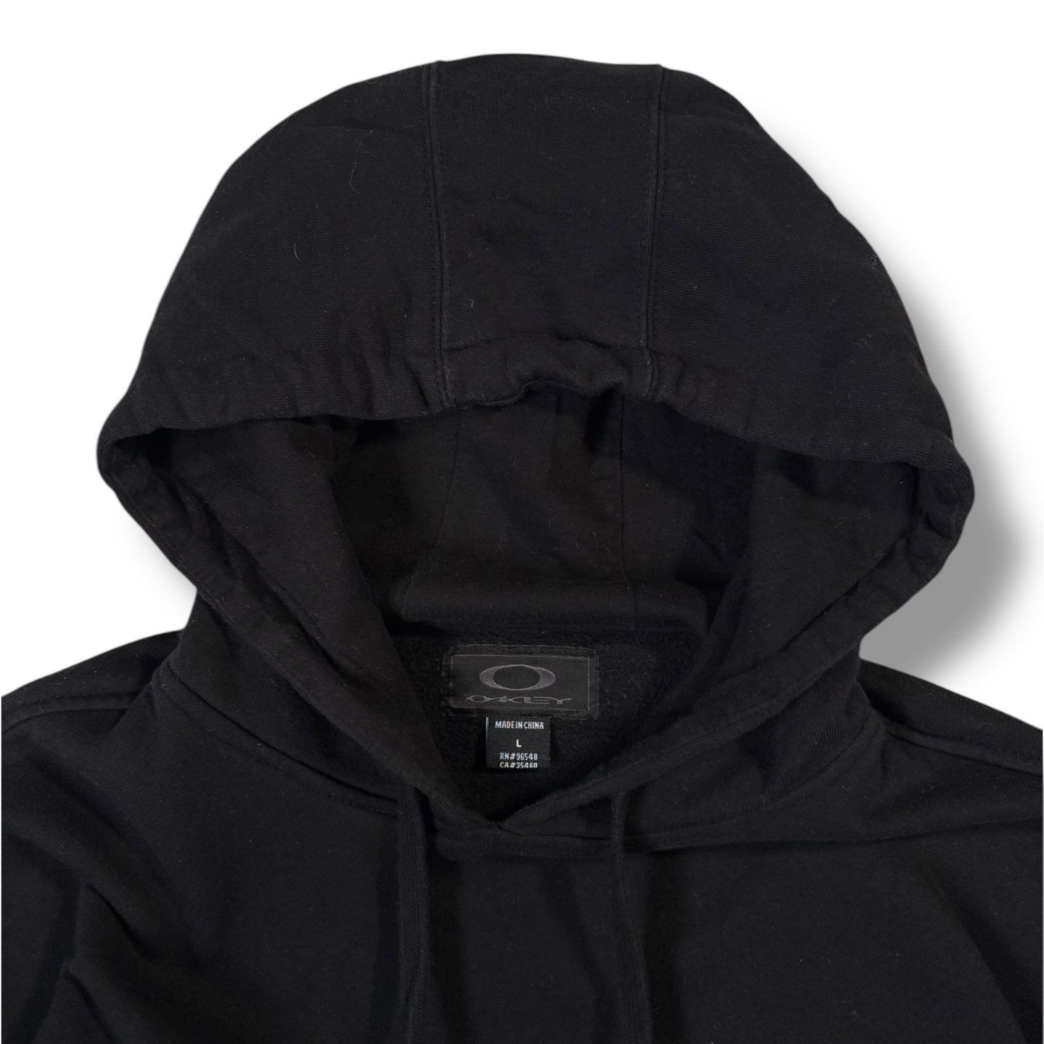 Black colourway, the hoodie is heavyweight. Features two open slit pockets at the front and drawstrings to adjust the hood.