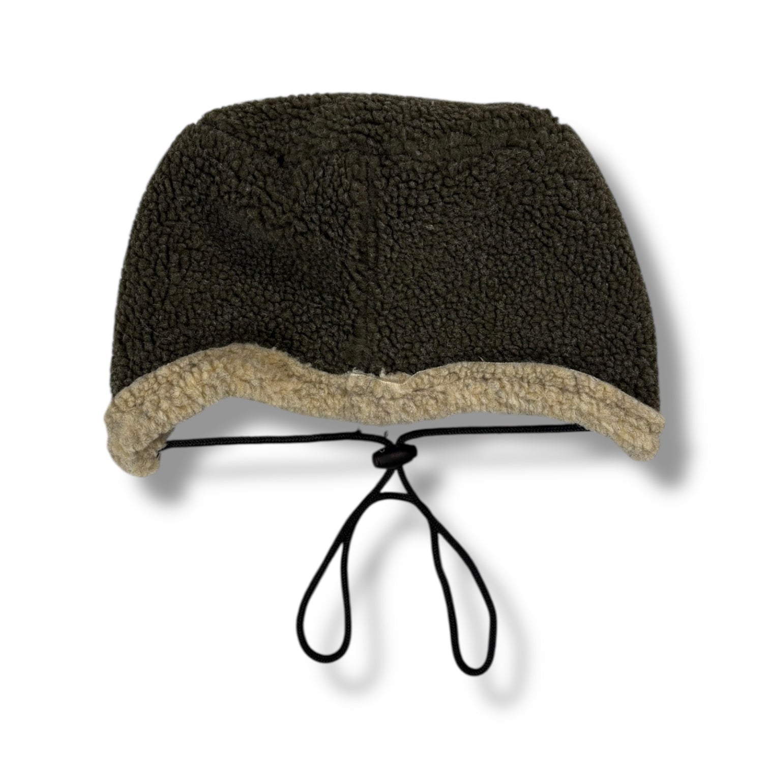 Fleece trapper hat / ushanka style. Dark Green / Cream colourway, centre logo. Software. Drawstring adjustable cord