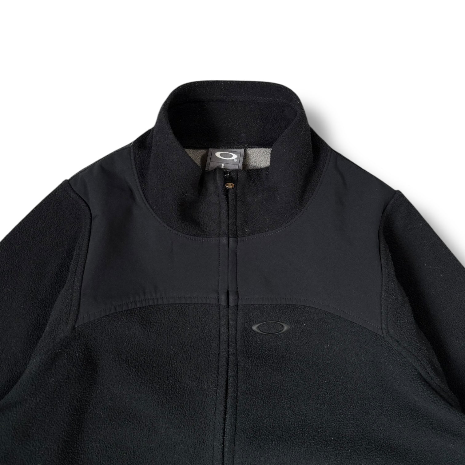 Black colourway, heavyweight fleece material. Two front zipped pockets, each with a small Oakley logo tab. Oakley logo embossed onto the lower back.