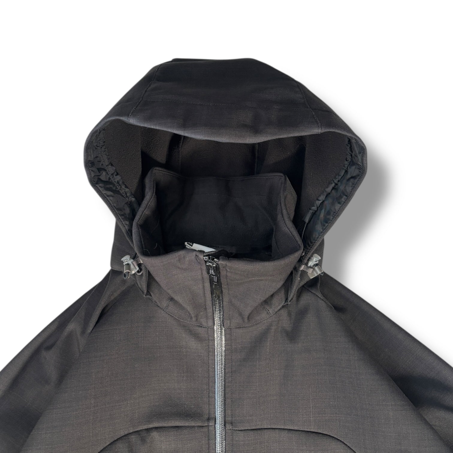 - Hooded design with integrated high collar