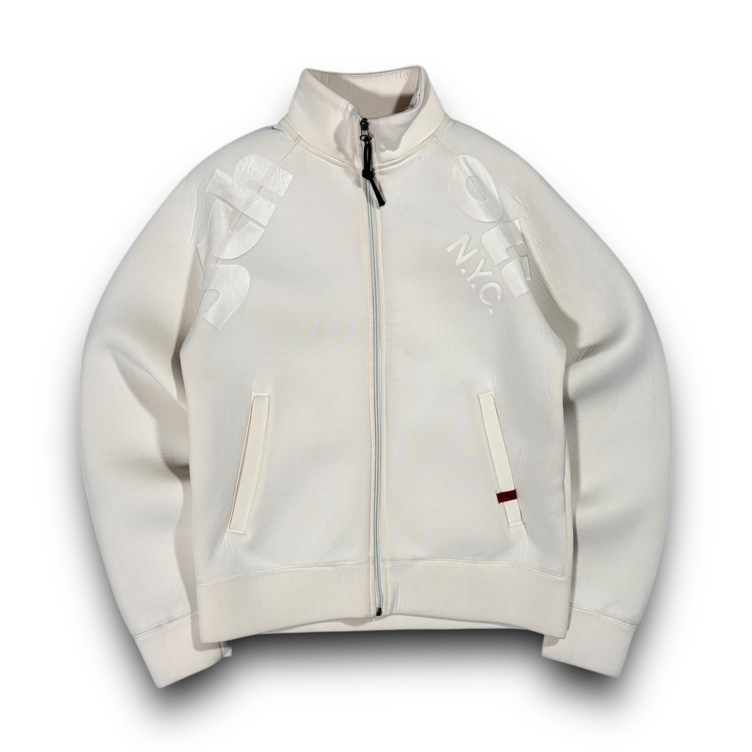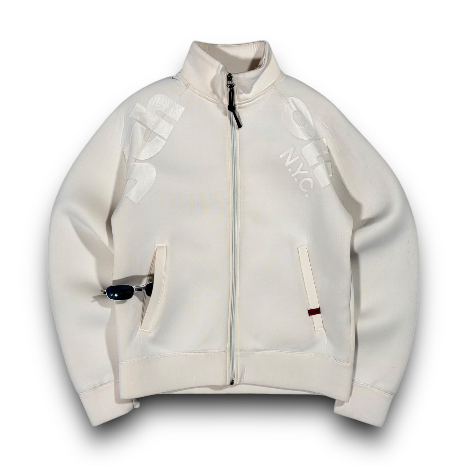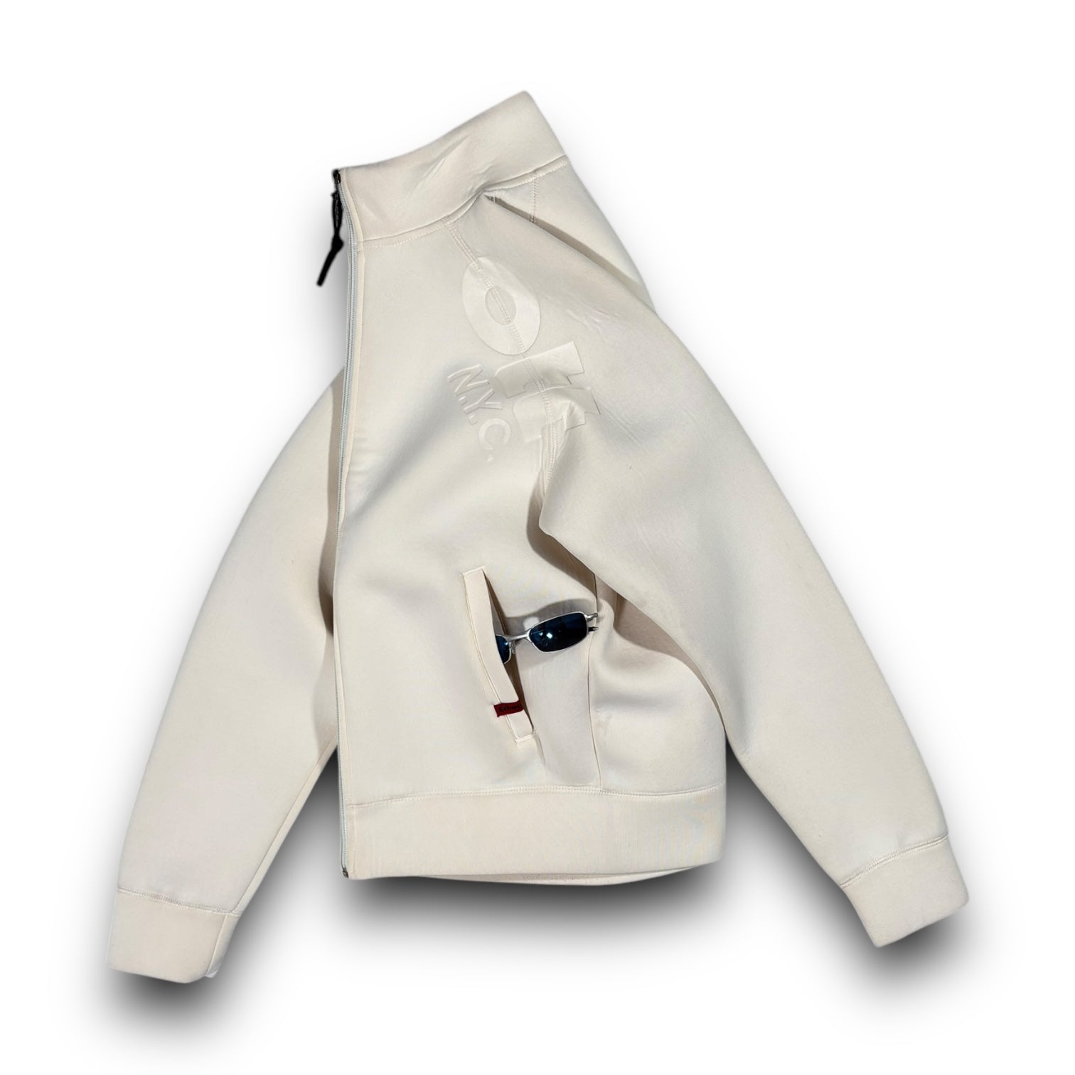 Cream colourway, heavyweight scuba like material. Open front pockets, hem is elasticated creating a boxy fit.